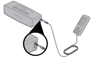 您可以将诸如便携式数字音乐播放器等其他音频设备用于 SoundLink® 扬声器。这需要使用一根一端是 3.5 毫米插头的音频连接线,以便连接 SoundLink® 扬声器上的 AUX 输入端。未提供两端都是 3.5 毫米插头的线缆。