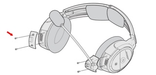 将保护盖安装到没有连接悬挂式话筒的耳罩上。塞入对应的螺丝,拧紧并固定保护盖