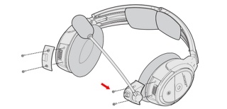 将保护盖安装到没有连接悬挂式话筒的耳罩上。塞入对应的螺丝,拧紧并固定保护盖