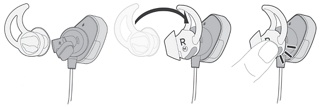 将新的 StayHear+ Pulse 鲨鱼鳍硅胶耳塞的开口处与耳机出音孔对齐,然后将耳塞旋转到出音孔上。按住耳塞的底部,直到它牢固地卡紧到位