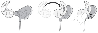 将新的 StayHear+ 鲨鱼鳍硅胶耳塞的开口处与耳机出音孔对齐,然后将耳塞旋转到出音孔上。按住耳塞的底部,直到它牢固地卡紧到位