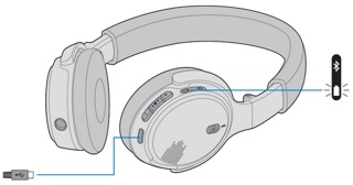 请将 USB 连接线的较小端插入右耳罩上的微型 USB 连接器中
