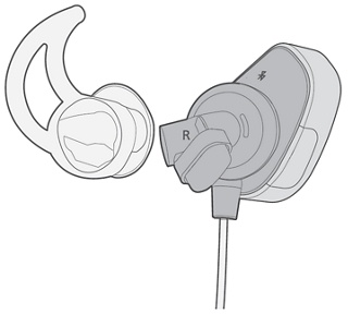每个 StayHear®+ Pulse 鲨鱼鳍硅胶耳塞和耳塞式耳机均标有 L(左)或 R(右)字样。请务必将左侧耳塞连接在左侧耳机上,右侧耳塞连接在右侧耳机上。