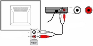 使用随附的立体声音频连接线,按照以下步骤从电视 Audio OUT(音频输出)接口连接到接口模块 Analog IN(模拟输入)接口: