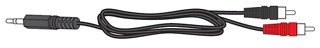Portable devices commonly have a 1/8" (3.5 mm) output jack. If yours does, you will need a 1/8" stereo male to a dual male RCA analog cable.