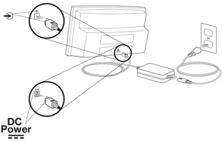 将电源组件的模塑端插入 SoundDock 系统背面的插孔。确保直流电源或电源符号正面朝上