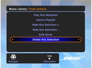 使用向下箭头突出显示 artist(艺术家)、album(专辑)或 track(曲目),然后按向右箭头,显示选项列表。