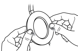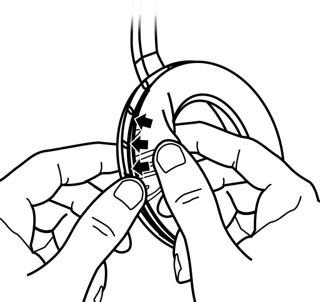 如果一个耳罩垫部分或全部分离,可以将其安装法兰推回到耳罩中。然后按压安装法兰的边缘,确保耳垫完全卡入到耳罩上。