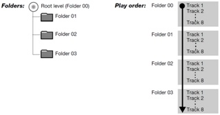 Music files on an MP3 CD will play according to the folder structure on the disc. For example: