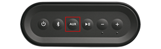 在扬声器上按 AUX 按钮,并确保音频源指示灯点亮