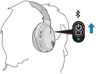 一直滑动右侧耳罩上的“电源/蓝牙®”按钮,直到出现蓝牙标志,然后紧按该标志,直到您听到“准备配对”或者看到蓝牙指示灯闪烁蓝光。