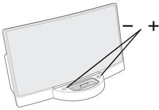 iPod 触摸式操控盘仅可调整耳机音量。它对 SoundDock 系统音量不起作用