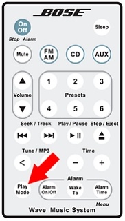 播放音乐文件 CD 时,您可以选择多种播放选项并更改播放音乐的模式。在遥控器上,重复按 PLAY MODE(播放模式)按钮,直到在系统前端显示您需要的播放模式: