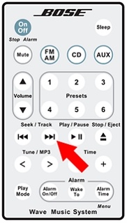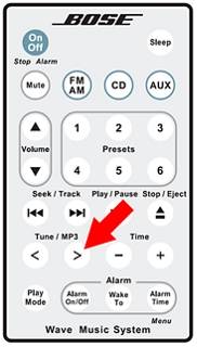 您的系统可以播放刻录在 CD-R 和 CD-RW 光盘上的 MP3 音乐文件。您可以使用 TUNE/MP3(调谐/MP3) 和 SEEK/TRACK(搜索/曲目)遥控器按钮,轻松浏览您的音乐文件。