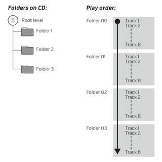 一张 MP3 CD 上的音乐文件会按照光盘上的文件夹结构进行播放。例如: