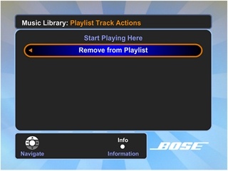 突出显示 REMOVE FROM PLAYLIST(从播放列表中删除),然后按向右箭头。确认请求将出现在屏幕上。选择 YES(是)或 NO(否),然后按 ENTER(确定)。这会使您返回到上一个屏幕。