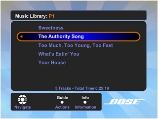 打开电视,选择正确的视频输入,查看 Bose® 音乐库屏幕菜单。