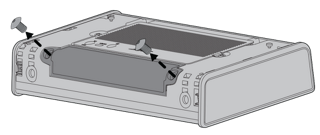 使用和备用电池一起提供的 2.5 毫米六角扳手卸下扬声器底部的两个螺钉