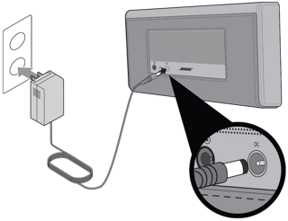 要激活新电池:将电源插头插入扬声器背面的直流电插座,然后插入交流电(市电)插座三小时