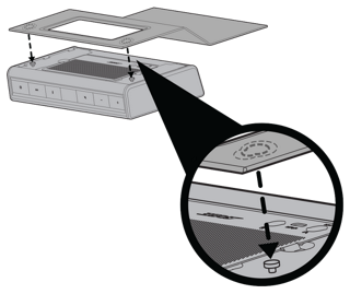 将盖子中的孔对准扬声器后面的锚柱,然后将盖子按压到位