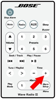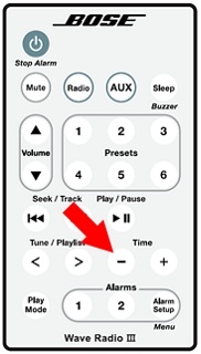 按住 time -(时间 -)或 time +(时间 +)按钮,直到显示的时间与当前时间吻合