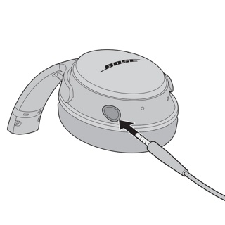 将音频连接线插入左侧耳罩上的接口