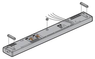根据您的安装位置布线。沿扬声器阵列长度方向设有线槽,如果您愿意,可将连接线压到线槽内的线夹下方