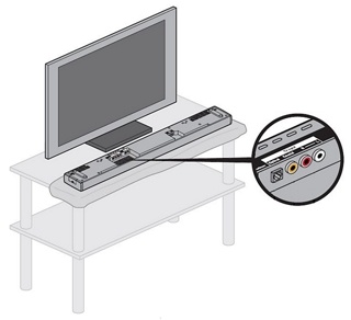 将扬声器阵列网罩朝下放置在电视前面的桌子上,并找到电视输入接口