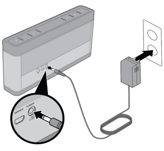 第一次使用 SoundLink® 扬声器时,请将其连接到交流(市电)电源为电池充电三个小时。在电池充电期间,您可以开始使用扬声器。
