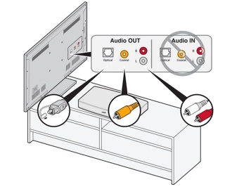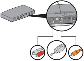 目前大多数电视都有三种音频输出,如下所示。 为了获得最佳音效,请尽可能使用最高质量的输出端。光纤是第一选择,同轴是第二选择而模拟是第三选择