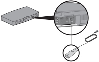 将音响系统电源线插入带电的交流电源插座。电源连接后,系统会发出两个提示音,表示可以使用