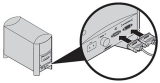 将 Soundbar 音箱随附的双接口连接线接至 Acoustimass 低音箱上对应的插孔内。握住接口,让 Bose 徽标朝上以确保正确对齐
