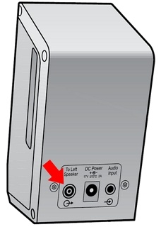 将左侧扬声器连接的扬声器连接线插头插入到有源(右侧)扬声器上的插孔,上面标记有:"To Left Speaker"(连左侧扬声器)