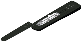 安装四节 AA (IEC-LR6) 电池,将电池正负极(+ 和 –)与电池舱内的标记对应