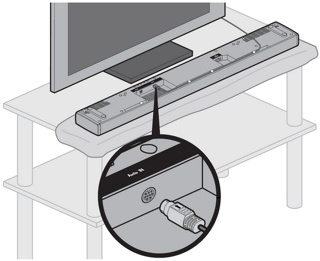 将音频输入线插入扬声器阵列上标有 Audio In(音频输入)的接口中。确保插头上有箭头的平面朝上
