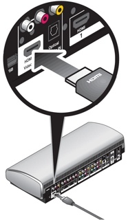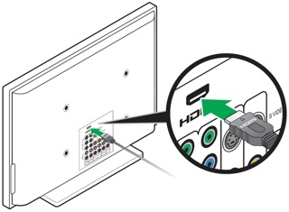 将 HDMI 连接线的另一端插入控制台上的 HDMI OUT Video to TV(HDMI 输出视频到电视)插孔