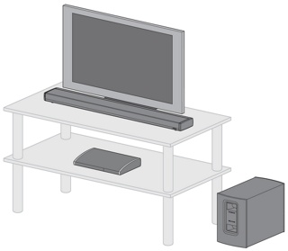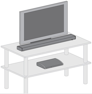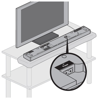 将扬声器阵列网罩朝下放置在电视前面的桌子上