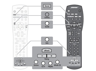 系统遥控器上的某些按钮专门用来处理您存储的音乐。这些特殊按钮包括: