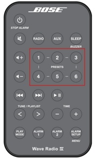 按住六个 presets(预设)按钮中的一个,直至听到两声哔哔声。预设编号和电台频率将会出现在显示屏上
