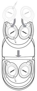 不使用耳机时,请将耳机存放在保护套中,使它们免于受到损坏。请根据以下步骤将它们正确放进保护套中: