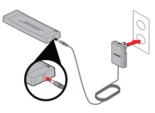 在第一次使用 Bose® SoundLink® Mini 扬声器前,请将系统连接到交流(市电)电源并给电池充电。您可以将电源线插入充电底座,或者直接插入扬声器。在电池充电期间,您可以开始使用扬声器。