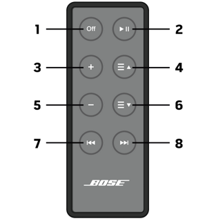 - 播放/暂停:按下可播放或暂停插接设备上的当前曲目;再按一下可恢复播放。