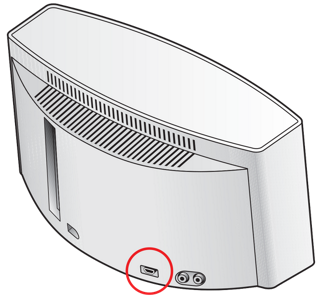 SoundDock 10 系统后部的“更新”插孔用于潜在的软件更新。