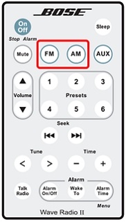 按下 FM 可切换到 FM。按下 AM 可切换到 AM。