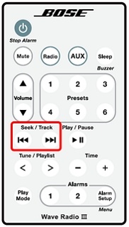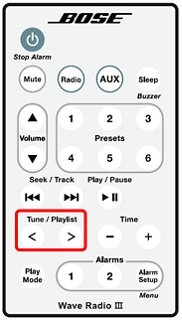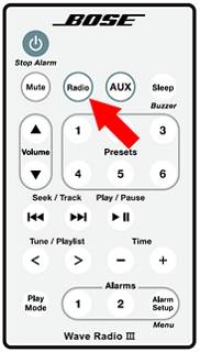 在遥控器上,按 RADIO(收音机)按钮可打开收音机。将会播放上次选择的无线电台。在系统开启时按 RADIO(收音机)按钮可以在 FM 和 AM 之间切换。