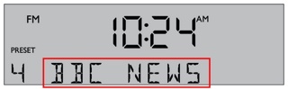 当您选择 FM 电台时,显示屏会显示当前电台的 RDS 信息。这由设置菜单中的 RADIO TEXT(无线电文本)设置来控制。