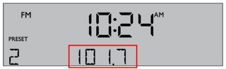 当按下 RADIO(收音机)、SEEK/TRACK(搜索/曲目)或 TUNE/PLAYLIST(调谐/播放列表)调谐广播电台时,显示屏中央会显示频率。