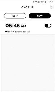 要设置闹钟,请点击主页上的“Set Alarm”(设置闹钟)按钮。您可以在此处打开或关闭闹钟,编辑已有闹钟并添加新闹钟。点击“EDIT”(编辑)按钮,选择多个闹钟。点击单个闹钟,编辑其时间和重复天数。