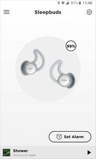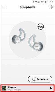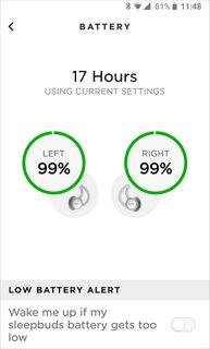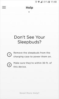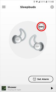 一旦程序成功定位睡眠耳塞,将显示睡眠耳塞当前的电池电量。如果两个睡眠耳塞显示的电量不同,则主页显示的电量为最低剩余电量。