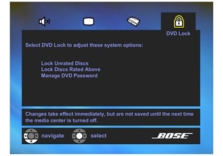 | 管理 DVD 密码 | 建立一个新的四位数编码,以限制访问特定级别的电影。 |